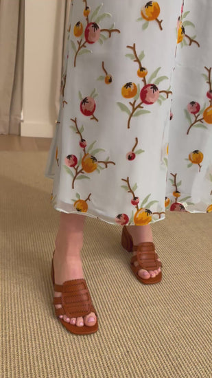 The Freya short sleeve dress is crafted from velvet burnout fabric with an all-over fruit pattern and features short puff sleeves for a feminine touch. Its midi silhouette and softly draped bodice create gentle movement and an effortlessly flattering shape.