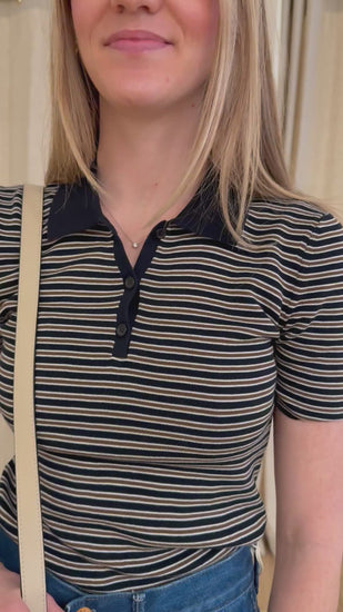 Gemmatta Stripe Polo - Dark Navy/Brown Stripe