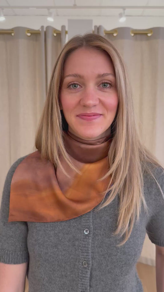 A signature accessory, the Chiara Scarf is re-envisioned with surreal, gestural botanicals from the work of Art Brut painter Anna Zemánková. Cut from silk crepe de chine, this multicolored scarf complements our ready-to-wear and can be used to accent our handbags or for personal hairstyling.